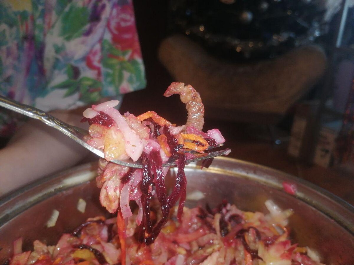 Подруги и знакомые просят приготовить этот салат на их праздники, так как у них просто не получается. Не знаю почему. Хотя я несколько раз подробно каждой рассказывала рецепт этого вкуснейшего салата с корейскими нотками. По началу рецепт салата кажется сложным, но я, после десятков лет практики, научилась его готовить всего за полчаса. Хотя первое время на него уходило не менее полутора часов. НО результат того стоит, даже не сомневайтесь. Все, кто пробует этот салат, действительно влюбляется в него с первой ложки. Ингредиенты Поясняю, часть - это одинаковое количество каждого ингредиента в уже почищенном и нарезанном состоянии. Как готовить Видео рецепт Проще всего будет посмотреть видео рецепт приготовление салата ЦАЙ: Если Вы больше предпочитаете читать рецепты, то вот текстовая версия рецепта: Пошаговое приготовление 1. Морковь, свеклу, картошку, мясо нужно нарезать тонкой соломкой. Каждый ингредиент по отдельности. 2. Мясо нарезать тонкими брусочками. 3. Часть лука - тонки