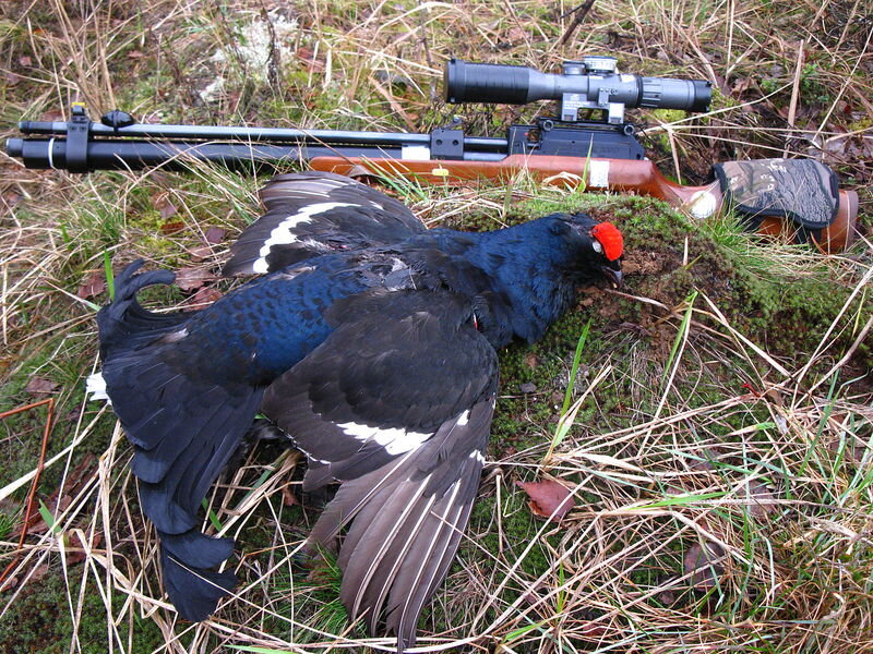 Охота с воздушкой на птиц становится весьма популярным занятием. Она требует более вдумчивого подхода к организации охоты, так как убойная сила пневматического оружия гораздо меньше, чем у огнестрельного. Поэтому и дистанцию надо выверять до метра, и учитывать погодные условия, и маскировку проводить более грамотно. Надо немножко разбираться в баллистике, калибрах, характеристиках боеприпасов. Многие считают, что охота с воздушкой является интеллектуальной, менее кровавой охотой. Чаще всего объектами охоты у нас являются вороны, рябчики, дикие голуби, утиные, глухари. Охота на рябчика Если решили заняться охотой с воздушкой на птиц, то рябчик будет самым интересным трофеем для начинающего охотника. На рябчиков охотятся только осенью. Птица эта оседлая. Обычно держится на ограниченной территории. Начинается охота, как ни странно, в начале лета. Охотник запасается 5 – 6 манками, настроенными на разные тональности (1 – молодой рябчик, 3 – самки и – самца). Затем отправляется