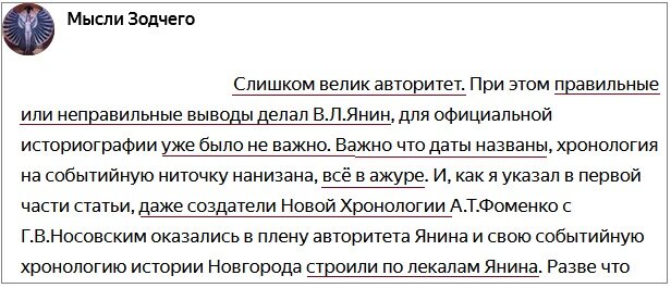 Вернусь к тексту месью Му :о) Интересно, что за крокозябра в уме, помогла Козину написать следующее выражение: "...по мере углубления в древность вероятность нахождения такого эталона снижается", и как это у него увязывается с дендрохронологией вообще и с сохранностью древесины в Новгороде (в частности)?