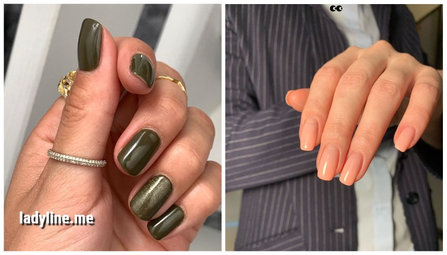В данной статье мы решили представить вашему вниманию подборку шикарных маникюров для осеннего времени года. Продолжайте читать, дальше вас ожидает порция вдохновения. Минимализм в одной комбинации с абстрактными рисунками - это прелестный вариант осеннего маникюра, который отлично будет смотреться на любой длине и форме ногтевой пластины. Мастера nail индустрии предлагают нам выбирать в этом сезоне нейтральную кофейную цветовую палитру. Белый рисунок гармонично подойдет к благородным кофейным оттенкам лака. Глубокий и стильный цвет хаки - идеальный вариант лака для осеннего шедеврального маникюра. С помощью лака цвета хаки можно создавать, как минималистичные, так и маникюр с лаконичным дизайном. Покройте четыре ногтя подходящим под ваши вкусовые предпочтения цветом, а один ноготь украсьте шиммерным лаком. Глянцевый топ станет идеальным завершением осеннего маникюра. Этой осенью будет актуальным использовать сразу пять разных лаков, которые по своим оттенкам гармонично перекликаются д