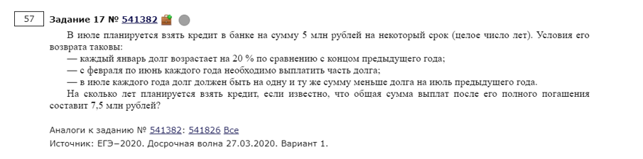 Но в этом есть и плюс – по сути, организаторы официально признали, что никакого усложнения экономической задачи ждать не стоит – если раньше разговоры «дадут оптимизацию» еще имели какой-то смысл, сейчас очевидно, что сюрпризов не будет, и достаточно освоить решение всего лишь ДВУХ типов задач, чтобы разобраться с ней на ЕГЭ. Это задачи с фиксированными и дифференцированными платежами. Второй тип по праву считается более сложным - если вы разберетесь с ним, бояться вам будет больше нечего.