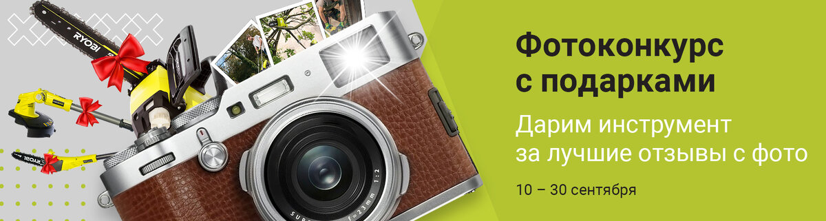 Мы собрали для вас в одном месте все скидки и акции сентября! 1. Инструмент за лучшие фото-отзывы Сроки акции: 10 – 30 сентября 2021 Готовьте фотоаппарат. Заряжайте смартфон. Инструменты Ryobi ждут своего звездного часа. Если они есть в вашем арсенале, вы можете принять участие в нашем конкурсе фото-отзывов. Победители получат крутые подарки от производителя. А это отличный шанс пополнить свой аккумуляторный набор ONE+ или начать его собирать. УЧАСТВОВАТЬ В ФОТОКОНКУРСЕ 2. Станки Ryobi со скидкой, работайте с удовольствием! Сроки акции: 6 – 30 сентября 2021 Даже в частной мастерской нужен хороший станок. Зачем тратить время на работу ручной циркулярной пилой, если можно установить распиловочный стол? У Ryobi представлены варианты в различных комплектациях – от базовой до расширенной. А еще есть модель, которая совмещает в себе торцовку и распиловочный станок. Выбирайте и получайте скидку! ВЫБРАТЬ СТАНОК 3. Осенняя распродажа на садовую технику – скидки поспели! Сроки акция: 1 – 30 сент