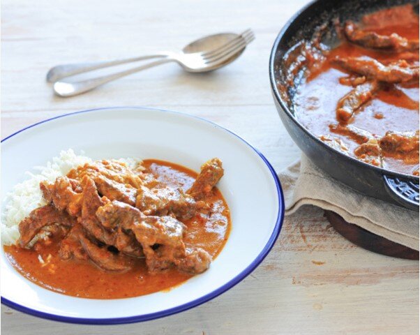 Блюдо сочетает картофель и говядину, которые тушат в кокосовом молоке. Их вкус дополняет паста массаман карри