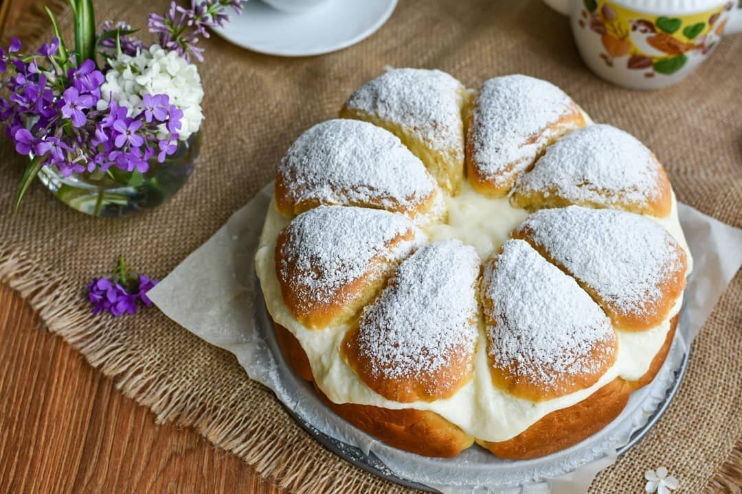 - 6. Смажьте пирог горячей водой и отправьте в разогретый до 170 градусов духовой шкаф на 45 минут.