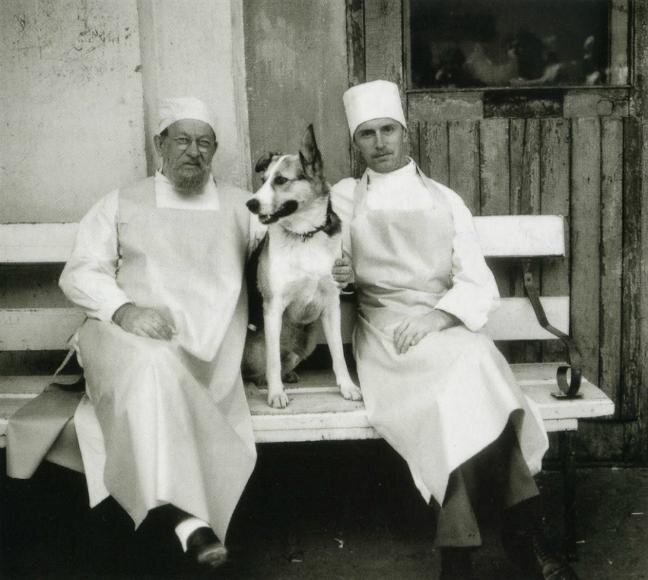 Борис Плотников, Евгений Евстигнеев и Шарик на съемках фильма «Собачье сердце», 1988 год