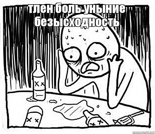 Все, на чем вы держитесь — это надежда, что ничего не ухудшится, что вы или ваши близкие не заболеют. Тихое ожидание старения и злобное потявкивание на правительство будет заливаться алкоголем, которое пожалуй единственное, что оставляет слепую надежду. Практически все, кому уже не 25, а некоторые и в этом возрасте, довольно давно находятся не в очень завидном положении. Дела на личном фронте вряд ли уже гарантируют то вкусное, ради чего их искали, бизнес — как чемодан без ручки, работа — опостылела, вами постоянно должен кто-то командовать, а увольнение может стать неприятным сюрпризом в любой момент. Вы стареете, потенция уменьшается, красота увядает. Что еще вам сказать? Ваши супружеские отношения тихо затухают, а у кого-то они затухли уже. Поиск секса на стороне не дал искомого, а уйти из семьи вы так и не смогли, а сейчас уже нет смысла. Что делать дальше? Непонятно. Дети? Да, дети единственная радость, но они уже давно выросли, а если ещё не совсем — то превратились в ношу, а не