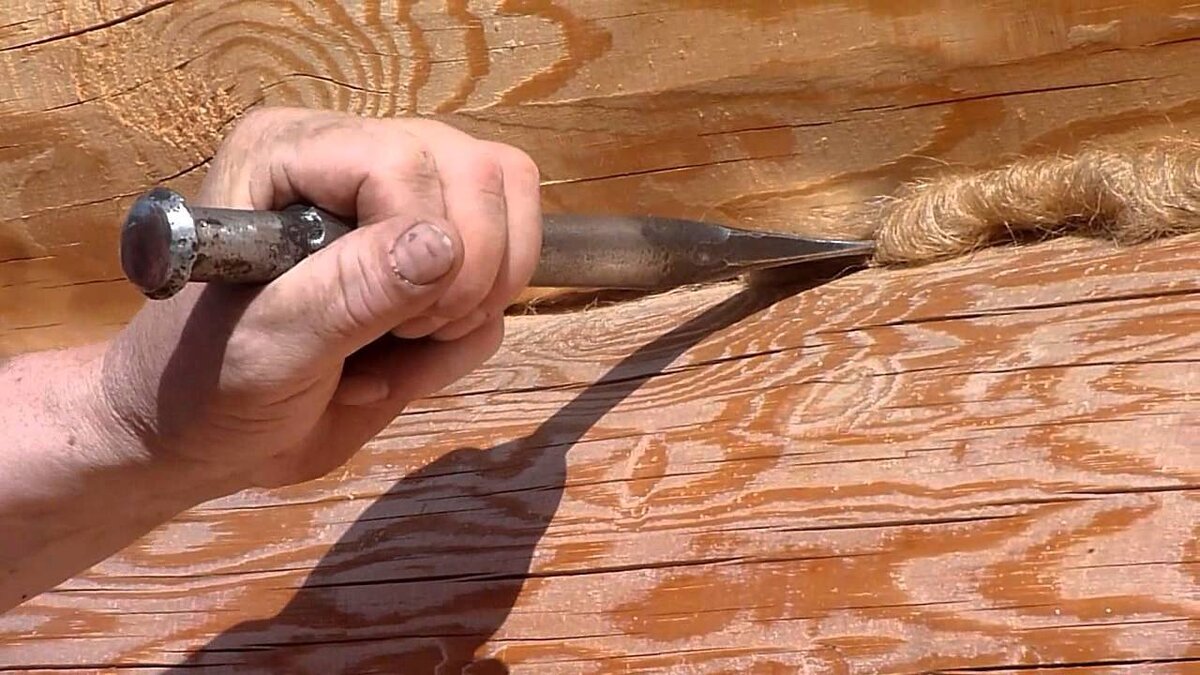 - 6) Шов после конопатки должен быть плотным и твердым, то есть вы сами можете его прощупывать пальцами и ощутить достаточно сильную плотность. В случае если шов проваливается, и вы рукой или стамеской можете пропихнуть его обратно в глубину шва, то это значит что конопатка была выполнена неправильно! Поэтому правильность конопатки определит даже не опытный человек, шов должен быть плотным и не проваливаться обратно!