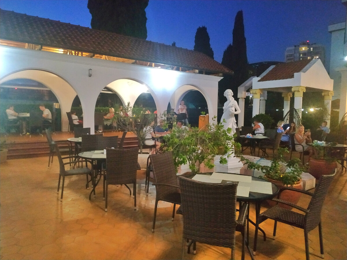 Ресторан "У рыбака" выбрали заранее по отзыва м и рейтингу (5 на Яндекс Картах). Уже потом, гуляя по набережной Адлера (мимо заведения вы не пройдёте, оно на первой линии), ещё более укоренились в выборе. Делюсь нашими впечатлениями от посещения, а также чеком. Интерьер и меню Ресторан 2-х этажный (со второго этажа открывается неплохой вид на море). Интерьер выполнен в интересном античном стиле "под Древнюю Грецию". Во внутреннем дворе есть даже скульптура олимпийской богини. По вечерам в заведении звучит негромкая живая музыка. Специализируется заведение на рыбе и морепродуктах. Цены, по меркам Сочи, средние. Меню расстраивает - одни сухие названия блюд, без фото и подробного описания. Прежде, кстати, "У рыбака" было кафе с одноразовой посудой, но заведение раскрутилось, переехало в другое место и стало рестораном. Наш заказ Цезарь с маринованным лососем, 450 руб. Первый раз пробовала всем известный салат с рыбой. Удивило, что лосося было прям много - несколько крупных пластов отменно