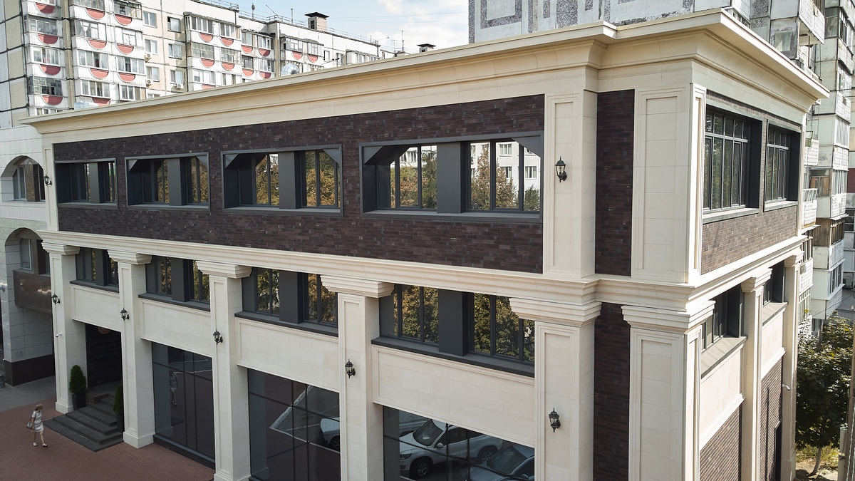 Часть старого офисного здания, где раньше находился БелгородСоцБанк, было заковано в керамогранит точно так же, как и расположившийся в том же здании Сбербанк. Фасад был выполнен в серых и коричневых тонах с глянцем. Конструкционно вентилируемый фасад повторял изначальную конструкцию. В результате, когда всё лишнее было снято и многочисленные плиты керамогранита были заменены на НВФ с великолепной клинкерной плиткой от Stroeher и прекрасные элементы Dekart@dekart_moscow, появилась идеальная структура стиля, которая подарила зданию новую жизнь. 📍г. Воронеж, Донбасская 16В (2 этаж)