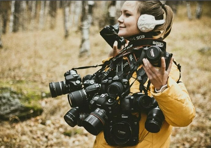 МИНИМАЛЬНЫЙ НАБОР ДЛЯ ФОТОГРАФА Для кого-то нужно обилие техники и аксессуаров, кто-то обходится минимумом. Что же, на мой взгляд, нужно иметь, для проф съемок: ▪️Тушка (камера). Повторюсь, она может быть любая. Между canon 1100d и canon 700d новичок не увидит разницы. Покупайте камеру по своему бюджету. ▪️Объектив. Зум или с фиксированным фокусным расстоянием (фикс). Для портретов возьмите фикс. Он позволит устанавливать маленькие значения диафрагмы, что напрямую влияет на размытие фона. Необходимости иметь больше двух-трёх объективов не вижу. ▪️Аккумуляторы. Я брала китайские на aliexpress и pleer.ru. Ни разу меня не подвели. Заряд держат примерно так же. На целый день съемки мне хватало 3 аккума. ▪️Флешки. Имеют свойство ломаться. Лучше взять несколько флешек небольшого объема, чем одну большого. Для съемки без задержек важен класс флешки или скорость записи и чтения. ВСЁ. Для того, чтобы хорошо снимать, этого достаточно. Остальное иметь желательно, но не обязательно. ▪️С
