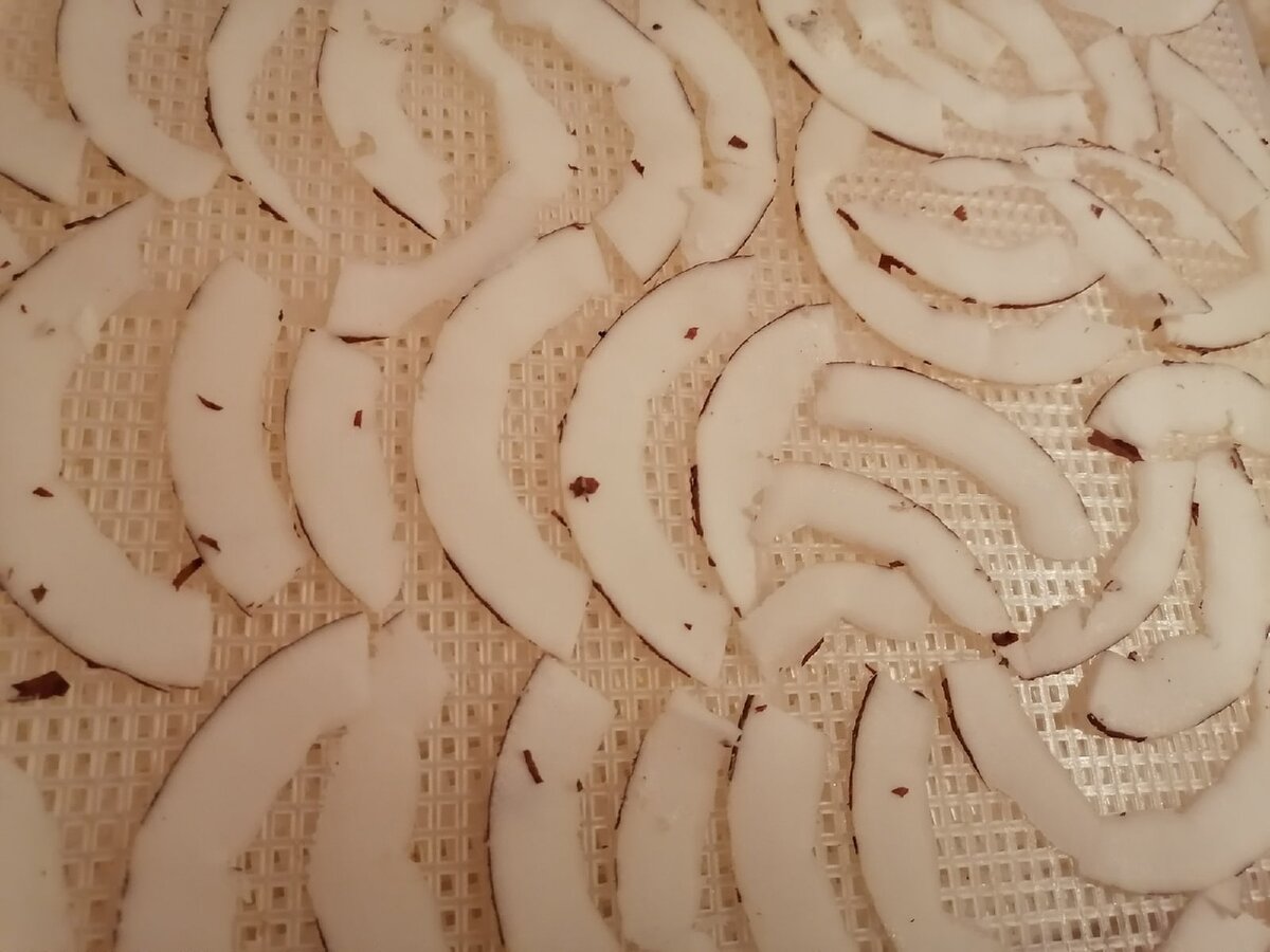 Кокосовые чипсы готовят из мякоти кокоса. Чипсы готовятся без сахара и имеют натуральную природную сладость. Это отличный вариант перекуса для детей и тех, кто ведет здоровый образ жизни. Купить чипсы из кокоса сейчас можно в магазине возле дома, но они не всегда с чистым составом. И цена на данное лакомство не совсем оправдана. Поэтому приготовить кокосовые чипсы самому гораздо выгоднее и вкуснее. Главное знать, как правильно нарезать мякоть и при какой температуре сушить, либо запекать. И с самого начала нужно правильно выбрать кокос. Далее кокос нужно открыть. Мякоть можно разрезать ножом на равные дольки, что бы чипсы получились одного размера. Овощным ножом ( или как ее еще называют "овощечисткой" ) нарезаем кокос на тонкие слайсы. Готовые слайсы раскладываем на поддоны для сушки и отправляем в сушилку на 8 - 10 часов, при температуре 55 - 60 градусов. Так же можно приготовить чипсы в духовке. Для этого выстилаем на противень пергаментную бумагу и отправляем в духовку на 1 час, пр