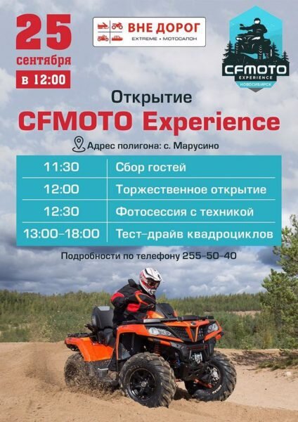 25 сентября официальный дилер CFMOTO, салон “ВНЕ ДОРОГ”, откроет новый CFMOTO Experience в Новосибирске!