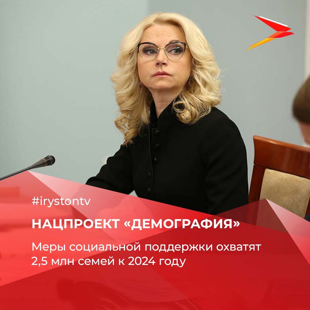 Реализация национального проекта «Демография» позволит к 2024 году охватить мерами социальной поддержки 2,5 млн российских семей. Об этом заявила вице-премьер России Татьяна Голикова на совещании с премьер-министром в режиме видеоконференции. Подчеркнула, будут продолжены мероприятия по повышению благополучия семей посредством реализации нацпроекта. Татьяна Голикова добавила, в соответствии с поручением президента, на основе принципов социального казначейства продолжат создание целостной системы мер поддержки семей с детьми для того, чтобы свести к минимуму риск бедности таких семей.