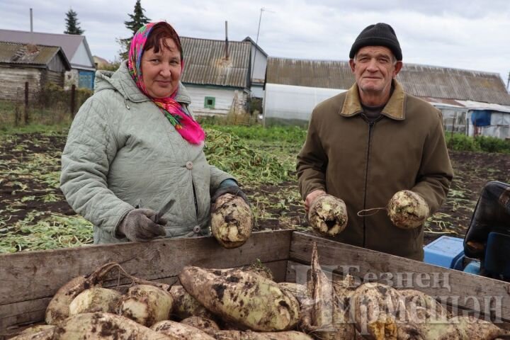 В этом году многие жалуются на низкую урожайность картофеля. А у Сафиных из Амирова она уродилась на славу. С 8 соток они собрали 250 (!) ведер клубней. Картофель и свеклу они сажают, чередуя местами, в почву вносят большое количество перегноя. Да и свекла у них в этом году выросла размером с "самовар". Эта культура на их огороде занимает площадь 5 соток. - Несмотря на то, что сажали картофель часто, он вырос крупным. Урожай чуть ли не с кузов КамАЗа. У нас три погреба и все они уже заполняются, - сказал Исмагиль Сафин. - Четыре раза пропалывали сорняк, - присоединилась к разговору Гульсина Сафина. - Свекла хорошо растет на чистой земле. Сафины всегда издавна содержат на подворье большое количество скота. Сегодня у них в сарае - одна корова, телка и бычок. Животные любят гибридную свеклу. Некоторым дают ее по два раза в день. Корнеплоды не твердые, поэтому крошат их ножом. Запасов хватает до февраля. автор: Кадыр Гумеров фото: Марат Гумеров Подробнее: http://nashcheremshan.ru/news/v-n