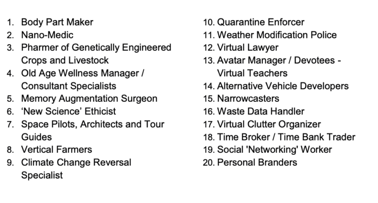 Пилот космического корабля, космический архитектор, космический гид; Специалист по предотвращению изменения климата; …и еще 15 профессий.