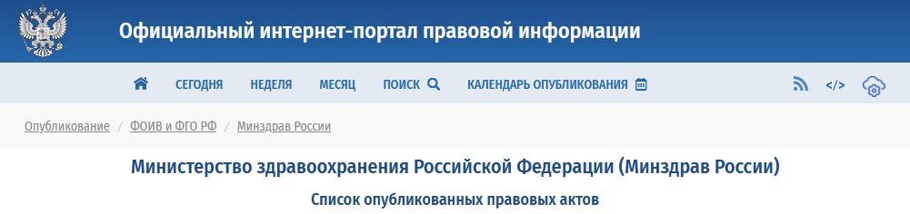 - Федеральный закон Российской Федерации от 21.11.2011 № 323-ФЗ «Об основах охраны здоровья граждан в Российской Федерации».