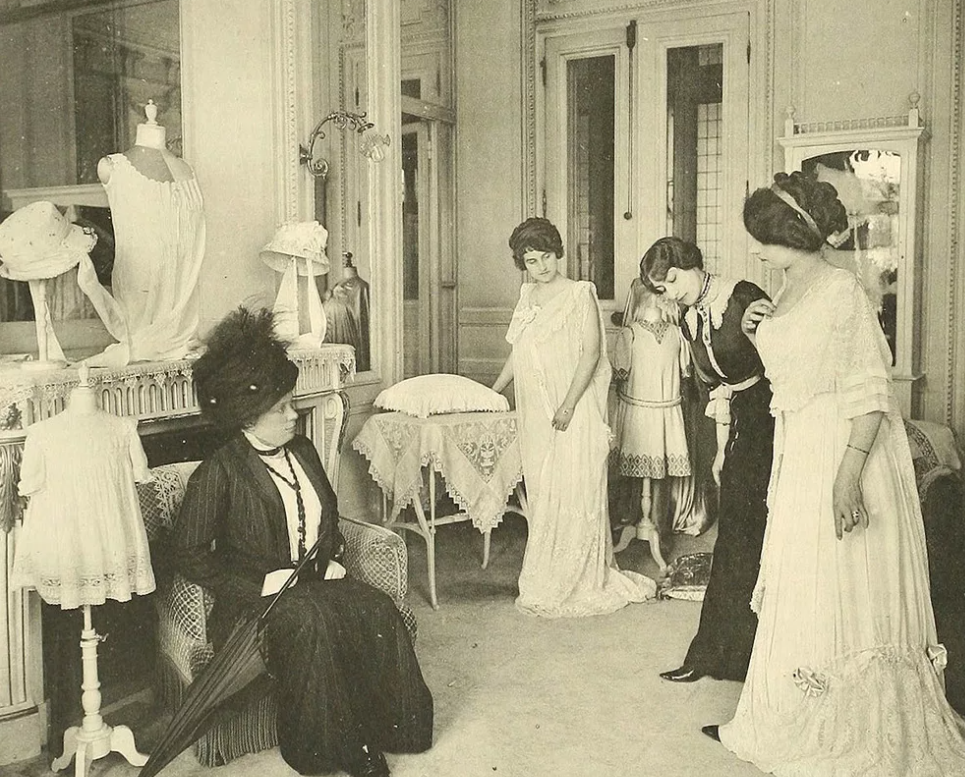 Европейскую одежду в России стали носить благодаря реформам Петра I. До этого традиционные формы одежды были просты по покрою и не менялись в течение длительного времени. Всю одежду, как правило, шили дома: «Домострой» предписывал каждой женщине экономно вести хозяйство и уметь кроить, шить, вышивать одежду для всей семьи. Одежду передавали по наследству — в ней ценили качество и стоимость ткани. До XVII в. в России практически не было собственного ткацкого производства — одежду шили либо из домотканых тканей (холста, сукна), либо из привозных — бархата, парчи, объяри, тафты 18 ИСТОРИЯ ДОМОВ МОДЫ из Византии, Италии, Турции, Ирана, Китая, сукна из Англии. Привозные сукно и парчу использовали в праздничном костюме даже зажиточные крестьяне. Облачение для московского царя и его семьи шили в Мастерской Царицыной палаты. Там работали и женщины, и мужчины-портные — «наплечные мастера» (так как они одевали «царское плечо»). Исключительно мужскими работами было изготовление обуви, изделий из