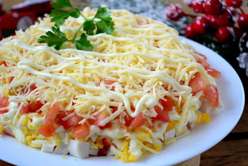 Салат с крабовыми палочками и томатами