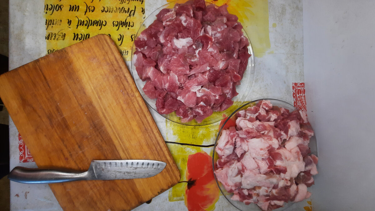 Не все получается с первого раза. Вот и домашняя колбаса только по прошествию почти целого года с начала экспериментов, начинает приобретать желаемую форму и вкус. Сегодня расскажу о рецепте домашней ЧОРИЗО. Который уже лёг в основу моего сыровялоделания, но, в то же время продолжает дорабатываться. Итак, для одного килограмма готовнам понадобится: Прикол ЧОРИЗО в двух моментах. Первый - это паприка. Второй - совмещение фарша и целых кусков мяса. Выбор, подготовка и засолка сырья. Покупаем свинину. Ищем окорок или лопатку, чтобы жира было поменьше. Первым делом просаливаем. Для этого нарезаем купленный кусок на части. В одну стопку побольше и с жиром - это пойдёт в фарш, в другую стопку кубиками, примерно 1 см. Они пойдут без мясорубки в колбасу. Нарезав, засыпаем посолочной смесью из расчёта 28 грамм на 1 кг мяса. Хорошо перемешиваем, плотно укладываем и на 5 дней в обычный холодильник, при температуре 4-6 С°. Специи, оболочка и вяление. После 5 дней готовим фарш. Сырье пожирнее п