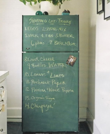 Для того чтобы оставлять записки на кухне, вовсе не обязательно покупать специальную меловую доску, можно покрасить холодильник