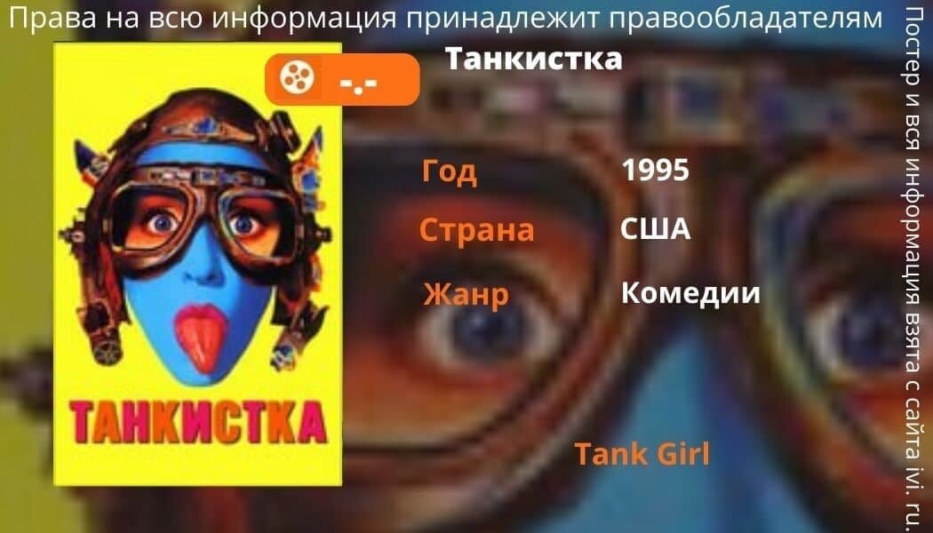 Фильм был сделан по сюжету британского комикса Элана Мартина и Джейми Хьюлетта - "Tank Girl" Действия происходили в апокалипсисе 2033-его года после экологической катастрофы в Австралии в результате это катастрофы начался жестокий дефицит воды который с каждым днем все больше больше. Но в фильме всем заправляет корпорация "Вода и Власть" И этой большой корпарации противостоит девушка на танке у которой явно не все дома. Ребекка - так звали девушку на танке вместе со своей бандой мутантов - рипперов - супер солдат для спецоперации, скрещенных с кенгуру. Они живут в засыпанном пустыней кугельбане. Играют на Саксофоне и рисуют на стенах в стиле "Золотого Дракона" Изредка они вылезают наружу и устраивают диверсии в филлиалах "Вода и Власть" лишая компанию всех запасов воды, но при этом соблюдая правило: Никакого огнестрельного оружия. В отличии от той девушки которая угнала танк у этой корпорации и влюбилась в его дуло) и теперь она не сможет пережить расставания со своим железным любовник