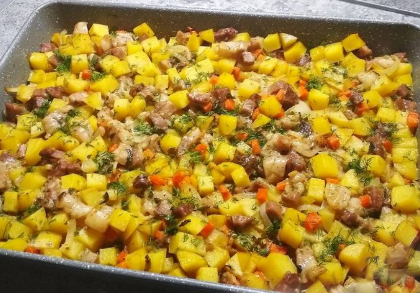 Очередное блюдо "два в одном". Запечённая свинина с овощами - картофелем, морковью, луком и чесноком. Быстро, просто и вкусно