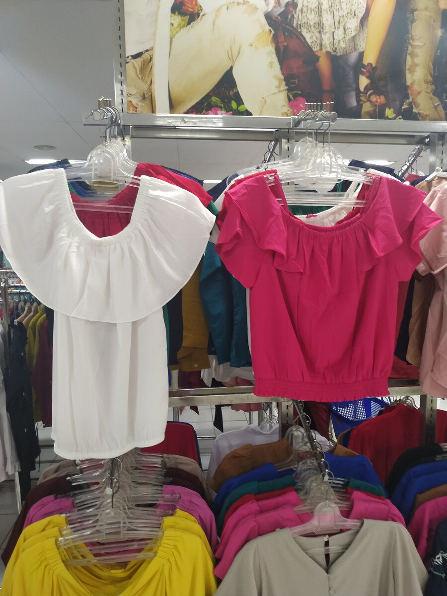 У нас в городе очень много магазинов одежды. И в каждом универмаге имеется модный отдел размером с небольшой магазин. Покажу немного ассортимента отдела женской одежды ближайшего к нашему дому универмага "Буана", из тогг, что сразу привлекает внимание. Вот такие футблки из лёгких тканей недавно появились в ассортименте - примерно в августе. Фото я делала тоже в августе, но раньше не было времени выложить. Далее в коллекции вот такая блузка, представлена, как видно по вешалкам, в нескольких цветах: Цена блузки: 500 рублей по нынешнему курсу. Дороговато, я считаю. Далее Традиционная рубашка - кебайя - в немного современенном виде: И такой вариант: Цена: Тоже около 500 рублей. За кебайю не жалко, но конкретно этот фасончик и размерчик не мои, да и ценовая категория тоже не моя - я купила недавно платье за 235 рублей. Есть вот такая симпатичная блузка, чуть дороже 500 рублей: А это всевозможный батик: Так и не научилась до сих пор различать яванский, сунданский и прочие виды индонезийско