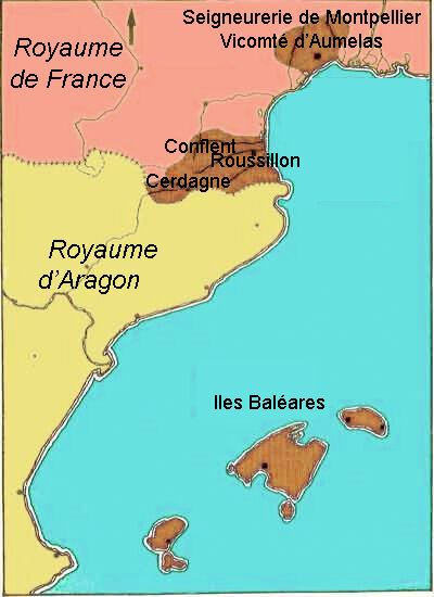 Само королевство оказалось не таким уж и маленьким, помимо трех (четвертый, Менорка, будет завоеван несколько позднее) Балеарских островов, в него входили материковые владения – графства Руссильон и Сердань в Каталонии, сеньории Монпелье, Карла и Омела в Окситании. Географически королевство находилось в узловой точке Средиземноморья, где пересекались интересы пиренейских государств, Франции и поднимающегося под прикрытием Римских пап Неаполитанского королевства. Способствовать разграничению такого важного региона с основным королевским доменом Арагона, было крайне легкомысленно. Но вначале новому королю Арагона Педро III, удалось довольно быстро склонить брата Хайме к признанию вассалитета, уже в 1279 году.