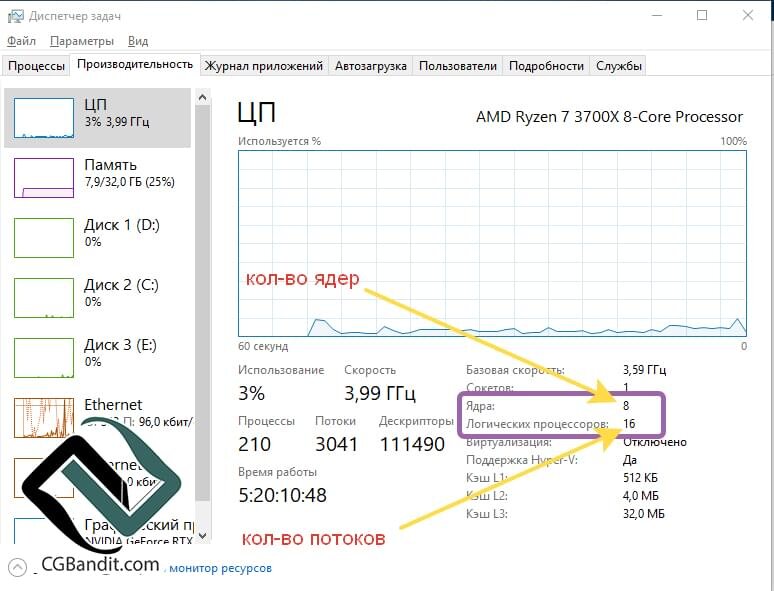 Через процессор идет сам процесс рендера в Corona renderer, то есть если у вас 2 ядра-4 потока и вы запустите рендер, то его придется оставить примерно на ночь. А если у вас уже 4 ядра и 8 потоков, то на рендер уйдет около 3-4 часов. Так же всегда обращайте внимание на количество потоков, потому что иногда бывает 4 ядра и 8 потоков, но бывает и 4 ядра и 4 потока. Чем мощнее у вас процессор, тем быстрее будет происходить рендер (соответственно работать вы будете быстрее) и вам не придется ждать ночами, или даже сутками.
