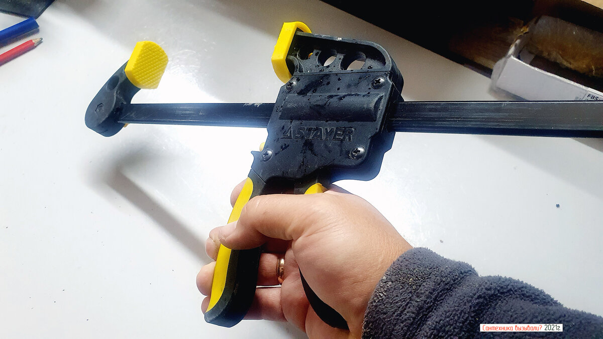 Струбцина не только стягивает, но и разжимает. Показываю один из вариантов применения