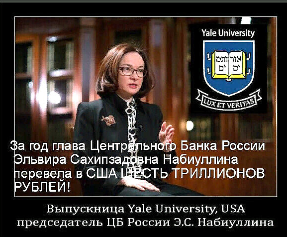 Давайте внимательно посмотрим сколько на картинке правды. Хатем прикинем, кому нужно распространять по сети подобную пропаганду. Первое, что бросается в глаза. Набиуллина выпускница МГУ имени Ломоносова. В 1986 г. окончила экономический факультет Московского государственного университета им. М. В. Ломоносова. Далее она поступила в аспирантуру. Что касается Американского образования. Скорее всего имеется ввиду стажировка в США. Если она конечно у неё была. Но это так, цветочки. Самый вкусный перл данной картинке в следующим. За год глава Центрального Банка России Эльвира Сахипзадовна Набиуллина перевела в США шесть триллионов рублей. Народ, вы о чем? Вы серьёзно думаете, что Американцам нужны Российские рубли? Что они с ними будут делать? В качестве трофеев обклеивать стены? Они элементарно на них ни чего не смогут купить. Смешно читать подобные вещи. Но грустно того, что люди верят в подобные сказки. За границу выводя только валюту. В здравом уме, рубли туда ни кто не вывод