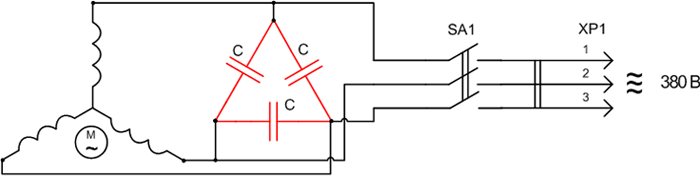 В качестве трёхфазной батареи конденсаторов хорошо использовать так называемые ком-пенсаторы реактивной мощности, предназначенные для улучшения соsφ в промышленных осветительных сетях. Их типовое обозначение: КМ1-0,22-4,5-3У3 или КМ2-0,22-9-3У3, которое расшифровывается следующим образом. КМ - косинусные конденсаторы с пропиткой минеральным маслом, первая цифра-габарит (1 или 2), затем напряжение (0,22 кВ), мощность (4,5 или 9 квар), затем цифра 3 или 2 означает трёхфазное или однофазное исполнение, У3 (умеренный климат третьей категории).