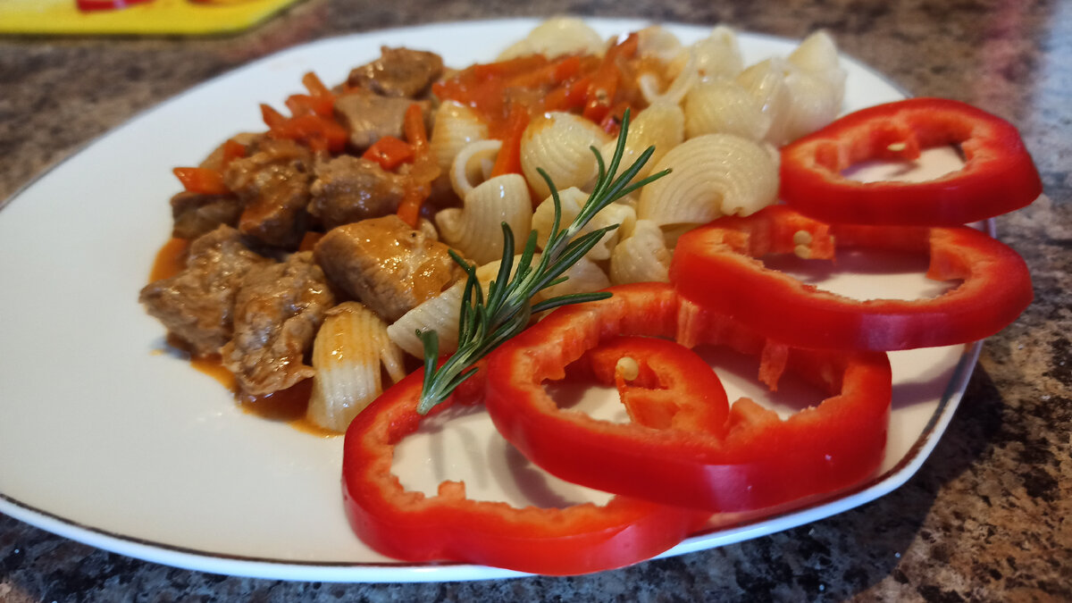 Гюляш как в садике 🤗😃 Только одно "НО" я люблю гуляш с морковкой. Подливка у меня получается не очень густой, но если вы любите погуще, просто добавляйте меньше воды. Итак: Мясо - 1 кг Лук 1 шт Морковь 1 шт Томатная паста 3 ст.л. Мука 1 ст.л. Вода 0.5 л Лаврушка 2 листочка Соль, перец по вкусу. Приготовление: Мясо режем мелкими кубиками. Выкладываем на разогретую сковороду. Пока мясо обжаривается. Чистим и режем лук мелким кубиком, затем добавляем к мясу. Солим, перчим, обжариваем. Чистим и шинкуем морковь. Высыпаем в сковороду. Все обжариваем на медленном огне пока морковь не обмякнет. А пока обжаривается мясо с овощами мы вскипятим чайник с водой. Когда вода вскипятится нальем её в сковороду, вода должна покрыть мясо. Но перед добавлением воды мы посыпем мукой мясо и хорошенько перемешаем, чтобы каждый кусочек был в муке. Накрываем крышкой пусть потушится минут 10. Добавляем томатную пасту, хорошенько перемешиваем, кладем лавровый лист и тушим ещё минут 10. Выключаем накрываем кры