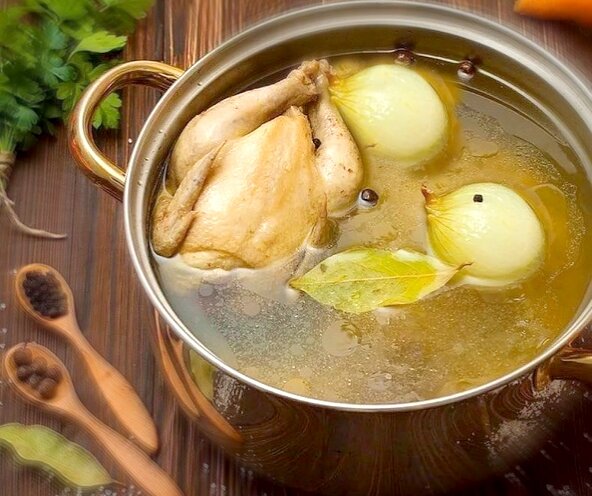 Мне часто приходится наблюдать, как домохозяйки, пытаясь порадовать мужа вкусным супом, варят бульон с фундаментальными ошибками. Да, возможно муж ей потом говорит, что это был лучший суп в его жизни, но нет предела совершенству, поэтому сейчас я расскажу вам пять основных правил для вкусного и прозрачного бульона: Да, во-первых нужно понимать, что цель приготовления бульона - извлечь из мяса и костей все полезные свойства, поэтому начинать нужно с того, что вы начнёте приготовление залив мясо холодной водой, а не закладывая его в кипящую воду. Это необходимо как и для того, чтобы максимально обогатить бульон полезными свойствами, так и для того, чтобы он оставался прозрачным, а так же это позволит вовремя и тщательно снять денатурированный белок (та самая пена). Все слышали знаменитое выражение "судью на мыло"? Когда-то оно имело более буквальный смысл, а все потому, что для приготовления мыла необходим жир. В нашем случае, жиры животного происхождения, вытапливаясь под воздействием