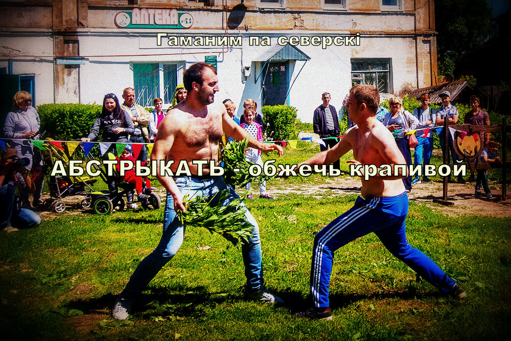 Слово, которого нет в русском языке, среди севрюков есть древняя национальная забава обжигать друг друга крапивой - абстрыкать, так закалялось терпение к боли в бою среди севрюков, традиция жива и в наши дни, например в Тульской области, Щекино провидятся соревнования, с реальными боями на крапиве.