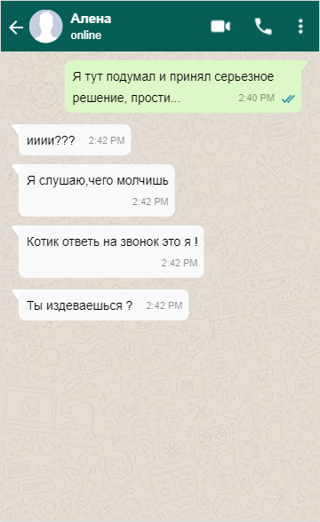 1. Эксперимент: Написать своей девушке "Я тут подумал и принял серьезное решение" и молчать