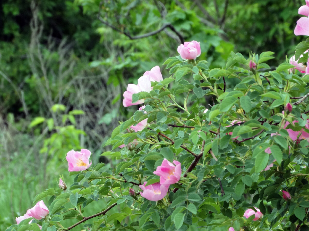 Немало материала для статей на канале я собираю во время велопрогулок. Люблю я это дело. Едешь неспеша, смотришь по сторонам, иногда что-то фотографируешь. Но кататься я люблю не только по городским улицам, иногда меня заносит и в безлюдные места, например, на брошенные дачи в районе Мокрой Мечётки. Я уже не раз писал про те места, неоднократно там бывал. Но каждый раз, когда там бываю, нахожу для себя что-то новое, интересное. Вот и в этой статье хотел бы поделиться фотографиями с одной из таких велопрогулок. Было это ещё в конце мая, но написать статью руки дошли только сейчас. Что такое конец мая? Это время когда цветут сады. Деревья уже отцвели, а вот кустарники ещё цветут, и цветут обильно. Особенно шиповник. Дорога петляла среди бывших дачных участков. Когда-то тут кипела жизнь, а сейчас всё заросло травой. Хотя дороги вполне себе укатанные. Дело в том, что некоторые участки обрели вторую жизнь. Там построили новые дома, причём явно не дачные, а для постоянного проживания. Ниче