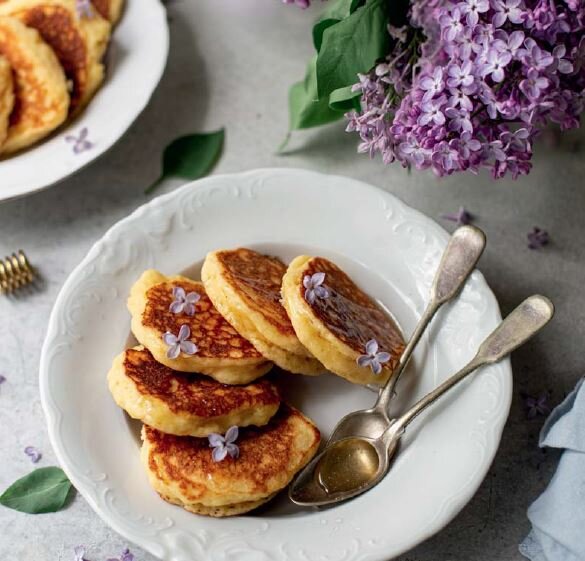 У нас в семье они называются хорошим словом ≪нажористые≫! Но есть в них одна опасность – невозможно остановиться, когда приступаешь к дегустации! Попробуйте их приготовить и вы, пусть в семье появится еще одна хорошая традиция. Ингредиенты ДЛЯ 24–25 ОЛАДИЙ ОПАРА: 6 г сухих активных дрожжей 50 г сахара 300 г пшеничной муки 250 мл молока ТЕСТО: 250 г творога 80 г сахара 2 яйца СО 50 г сливочного масла 82,5% ½ ч. л. соли Растительное масло для жарки Мед для подачи Приготовление 1 Для опары в глубокой чаше соедините сахар, дрожжи и половину муки, добавьте частями теплое молоко (не выше 40 ˚С), помешивая, чтобы не было комочков. Перемешайте до однородности, накройте чашу кухонным полотенцем и уберите в теплое место для расстойки. Когда опара увеличится примерно вдвое, обычно на это уходит около часа, добавьте вторую половину муки, перемешайте и дайте подойти второй раз. 2 Пока поднимается опара, творог протрите через сито или измельчите блендером. Яйца взбейте с сахаром до посветления массы