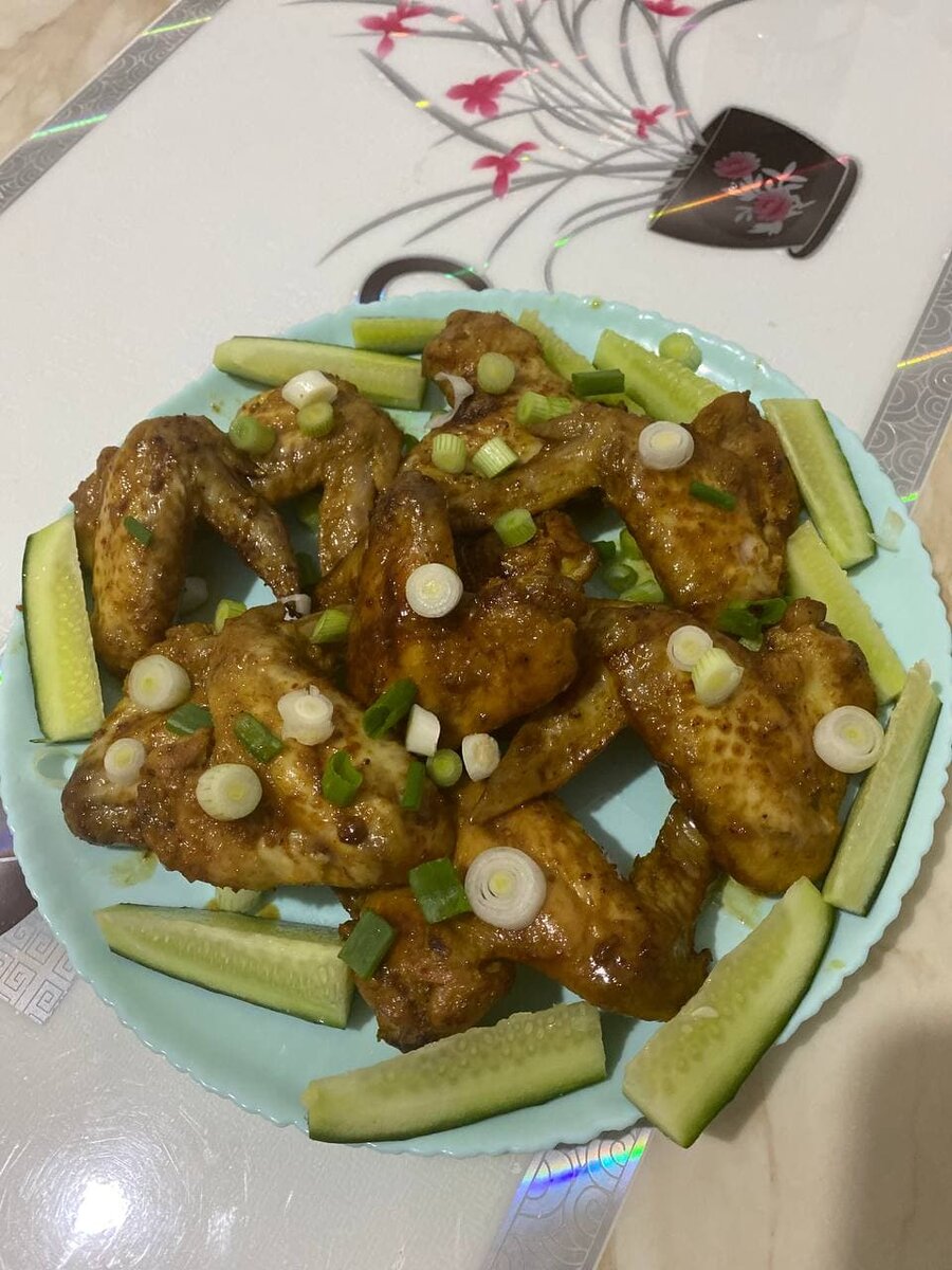 Многие хозяйки не любят куриные крылышки из-за минимального количества мяса на них и большой массы костей и кожи. По этой же причине они являются диетическим продуктом. Я нашла для себя способ приготовления крыльев - это запеченные крылышки в духовке. Они не требуют много времени для маринования, им хватит до получаса полежать в маринаде, чтобы придать нужный вкусовой оттенок. Нам потребуется: • Крылышки - 10-12 шт • Соль/красный перец по вкусу • Паприка - 1 ст.л • Соевый соус - 1 ст.л • Чеснок - 1 зубчик • Карри - 1 ч.л • Горчица - 1 ст.л • При желание можно добавить ложку мёда👍 Приготовление: Чтобы блюдо лучше выглядело, с крыльев желательно срезать "торчащий палец". При термообработке он может сильнее зажариться и почернеть, что придаст блюду неприглядный вид.