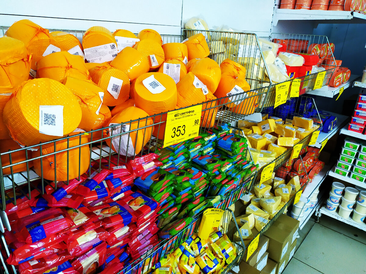 Наконец-то и в наш "Светофор" завезли много разнообразного сыра и копчёностей.
