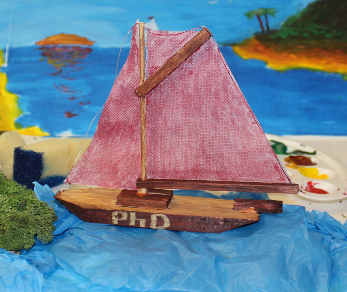 После высыхания клея, кораблик готов к дальнейшей работе над ним.