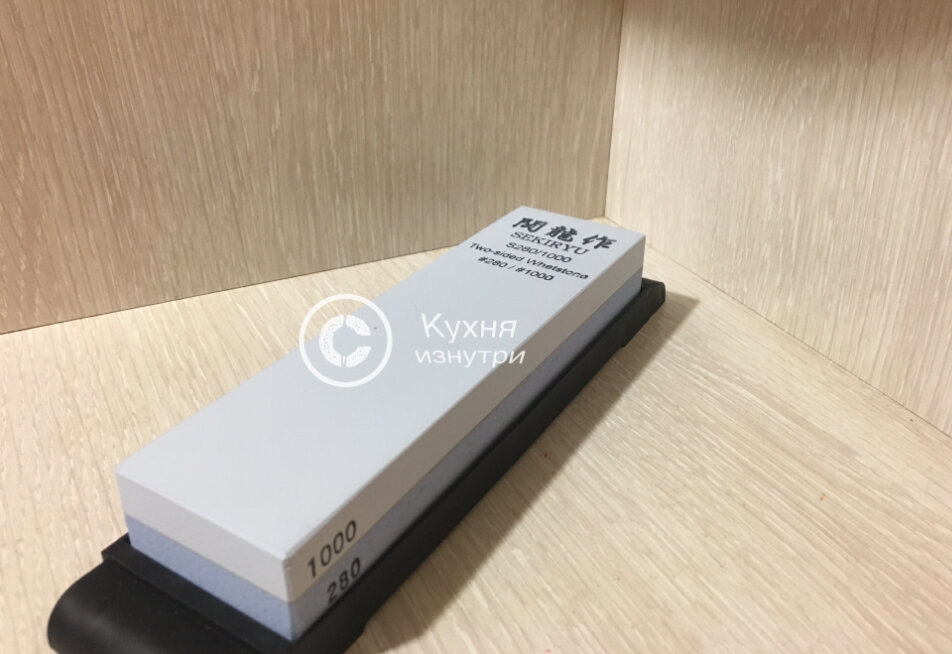 Привет друзья! Вы на канале "Кухня изнутри". И сегодня рубрика "Обзоры". Обозревать в этой статье мы будем японский водный камень Sekiryu SR-280/1000. Камень это пригодится для заточки кухонных ножей на домашней и профессиональной кухне. Все, кто так или иначе связан с кулинарией и приготовлением еды, рано или поздно сталкиваются с воросом заточки кухонных ножей. Все-таки это основной иструмент повара. Я убеждён, что нет ничего лучше для заточки кухонных ножей, чем японские водные камни. И один из таких камней у нас сегодня на обзоре. Я пользуюсь таким камнем уже пару месяцев в ресторане. Там довольно большой объём заточки. А совсем недавно приобрёл такой же себе домой. Начнём с упаковки. Она довольно проста. Коробочка открывается принципу "Айфона". И на ней всего 2 наклейки. Одна - с логотипом и названием, а вторая - с маркировкой и штрих-кодом.