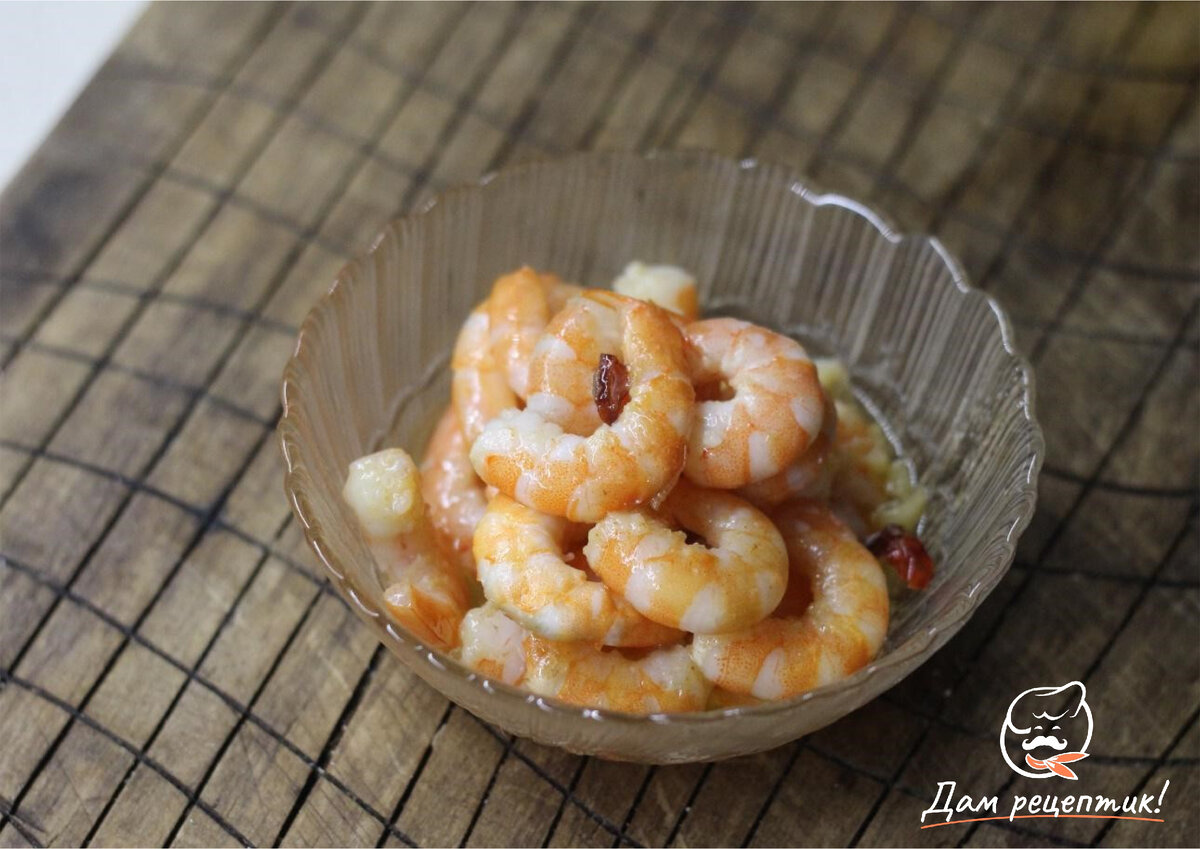 Чесночные креветки в пикантном соусе станут идеальной закуской для праздничного стола. Закуска получается аппетитной, слегка острой и очень ароматной. Благодаря быстрой обжарке креветки остаются сочными и нежными, а чеснок и пряности только подчеркивают вкус морепродуктов. Энергетическая ценность на порцию Сложность рецепта: Ингредиенты: Из расчета на 1 порцию Рецепт приготовления: Шаг 1 Для начала необходимо очистить креветки. Шаг 2 Пассеровать на двух видам масла чили и рубленый чеснок. Шаг 3 Всыпать креветки. Томить морепродукты две минуты на очень маленьком огоньке. Шаг 4 Ароматные острые креветки готовы! Приятного аппетита! *********************************************************** Подписывайтесь на наш канал! С нами готовить просто и быстро! Мы пошагово расскажем вам, как правильно и вкусно приготовить любимую домашнюю еду из самых простых ингредиентов - холодные закуски и салаты, блюда из рыбы и мяса, десерты и, конечно, полезные лакомства для ваших любимых детей. *************
