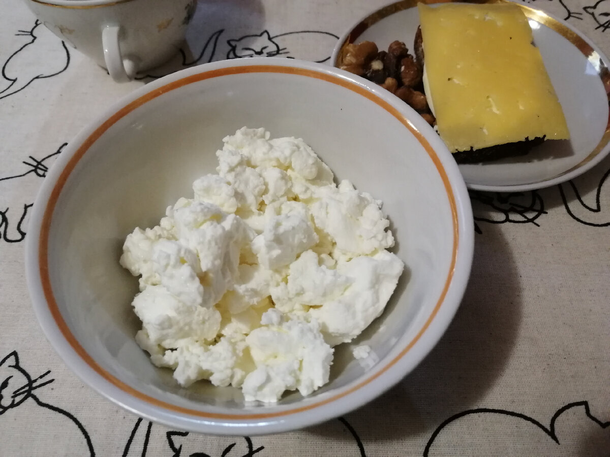 Всем привет! Меня зовут Татьяна. Уменьшаюсь дома с большого веса, на сто килограмм. Пока программа такая - избавление по максимуму от пищевого мусора и подсчет калорий. Завтрак. Сегодня уж точно никто не скажет, что еды мало)). Творог, соскучилась даже по нему, бутерброд с маслом и сыром, орехи, кофе с молоком - ну объелась просто. Творог 5% Ржаной хлеб+масло+сыр Кофе с молоком+орехи Чтобы растрясти немного, да и выполнить норму по прогулке, пошла на дальнюю ярмарку. А там оно - сало десяти сортов. Ну ладно, пяти. И сало правильное - с небольшой прослойкой, белое, мягкое а шкурка, наоборот, жесткая. Больше, кстати, ничего интересного и не было. Творог "деревенский", вот именно что в кавычках деревенский, даже по виду ненатуральный. Фрукты дорогущие. Рыба, правда, еще была свежая, но рыба мне пока не нужна. Обед. Дома после прогулки на ярмарку (а погода была изумительная, вот просто классическая осень, так что ходила я долго) ждали меня уже двухсуточные щи. Добавила к ним бутерброд