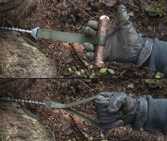 Привет всем читателям! Многие задаются вопросом - пригодится ли пила в походе, или будет лежать в рюкзаке мёртвым грузом? В этой статье мы попытаемся разобраться в этом и попробуем выбрать подходящую. В несложном походе с опытными наставниками пила конечно не потребуется, либо маршрут будет несложный, либо у старших товарищей окажется этот инструмент. Однако, если поход организован парой - тройкой человек, пила обязательно пригодится. Для чего же в походе нужна пила? С помощью пилы будет легко заготовить дрова, напилить колышки для палаток, собрать простейшую походную мебель, либо укрытие, и многое другое. Разновидности походных пил. Цепная пила. По виду похожа на цепь от бензопилы - состоит из таких же звеньев, однако геометрия зуба больше подходит для работы вручную. Достаточно гибкая, отлично складывается до компактных размеров, места занимает немного. Такой пилой проще работать вдвоём. Годится для крупных брёвен, не особо удобна для тонких сучьев. Струнная пила. Дешёвая, компактная
