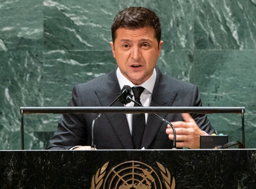 А тем временем Зеленский вдруг снова переходит к пинанию ООН за неповоротливость, неэффективность. Но он понял причину и готов выписать рецепт.