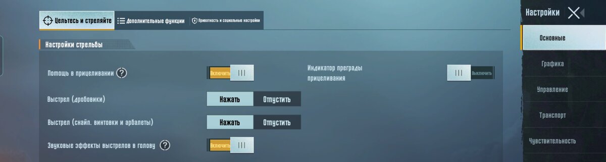 Сегодня разберём часть настроек в игре pubg mobile. Итак, заходя в настройки, первое, что мы видим это помощь в прицеливании. Достаточно много споров идёт по поводу этой настройки и большинство все же включают эту настройку. Если кратко, то при включении помощи в прицеливании наш прицел во время стрельбы, не важно одиночная, полуавтоматическая или автоматическая, будет двигаться на врага, точнее в центр модельки (туловище). Так почему же не все хотят включать этот параметр? Дело в том, что помощь в прицеливании не работает на присевших или лежачих врагов, либо работает через раз. Также из личного опыта могу подметить что если перед тобой лежит враг, а за ним стоит или бегает враг, помощь в прицеливании в 99% случаев сработает на бегущего врага и не важно что лежачий стреляет в тебя или ты хочешь убить лежачего, он просто будет следовать за стоячим врагом. На самом деле таких случаев достаточно мало, поэтому я рекомендую вам включить этот параметр. Далее идёт параметр индикатор преграды