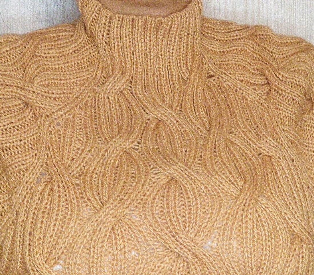 Всем привет, меня зовут Елена. Я сейчас вяжу джемпер "Золотой" и решила поделиться своими схемами. Напомню, что я вяжу спицами 3.75 мм из пряжи "MR"(это кавказская пряжа). в 100 гр. - 250 м. Далее покажу по отдельности, как я вписала рисунок. Здесь в красной рамочке раппорт узора. Косы переплетаются по всей длине в одном направлении, соседняя коса переплетается в другом направлении. Коса состоит из 16 петель (8 на 8) и начинается с изнаночной петли. И далее схемы рукавов. На рукавах я делала развороты для ростка. На этих схемах только начало вязания, нужно вязать таким образом до нужной длины кокетки. Спасибо за внимание! Если будут вопросы, пишите, постараюсь ответить!