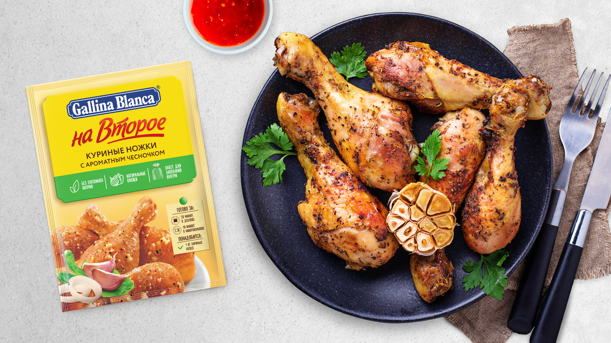 Второе блюдо. Время приготовления: > 60 минут. Уровень: Лёгкий Ингредиенты Как приготовить Куриные ножки с ароматным чесночком Шаг 1 Приготовьте гарнир: в каждой очищенной картофелине сделайте несколько глубоких разрезов, но не разрезайте до конца. Немного посолите и поперчите. В разрезы вставьте кусочки сыра. Сверху на каждую картофелину положите небольшой кусочек сливочного масла. Запекайте картофель в разогретой до 180°С духовке в течение 30-40 минут. Шаг 2 Положите куриные ножки в пакет для запекания, добавьте смесь «Куриные ножки с ароматным чесночком» Gallina Blanca и аккуратно перемешайте. Старайтесь это делать предельно осторожно, чтобы не повредить пакет для запекания. Не добавляйте дополнительных специй к курице — всё необходимое уже есть в составе приправы. Шаг 3 Закройте пакет приложенным зажимом, оставив отверстие диаметром 1 см для выхода пара, и аккуратно, чтобы не повредить пакет, равномерно распределите смесь внутри пакета, слегка встряхивая его. Для приготовления в ду