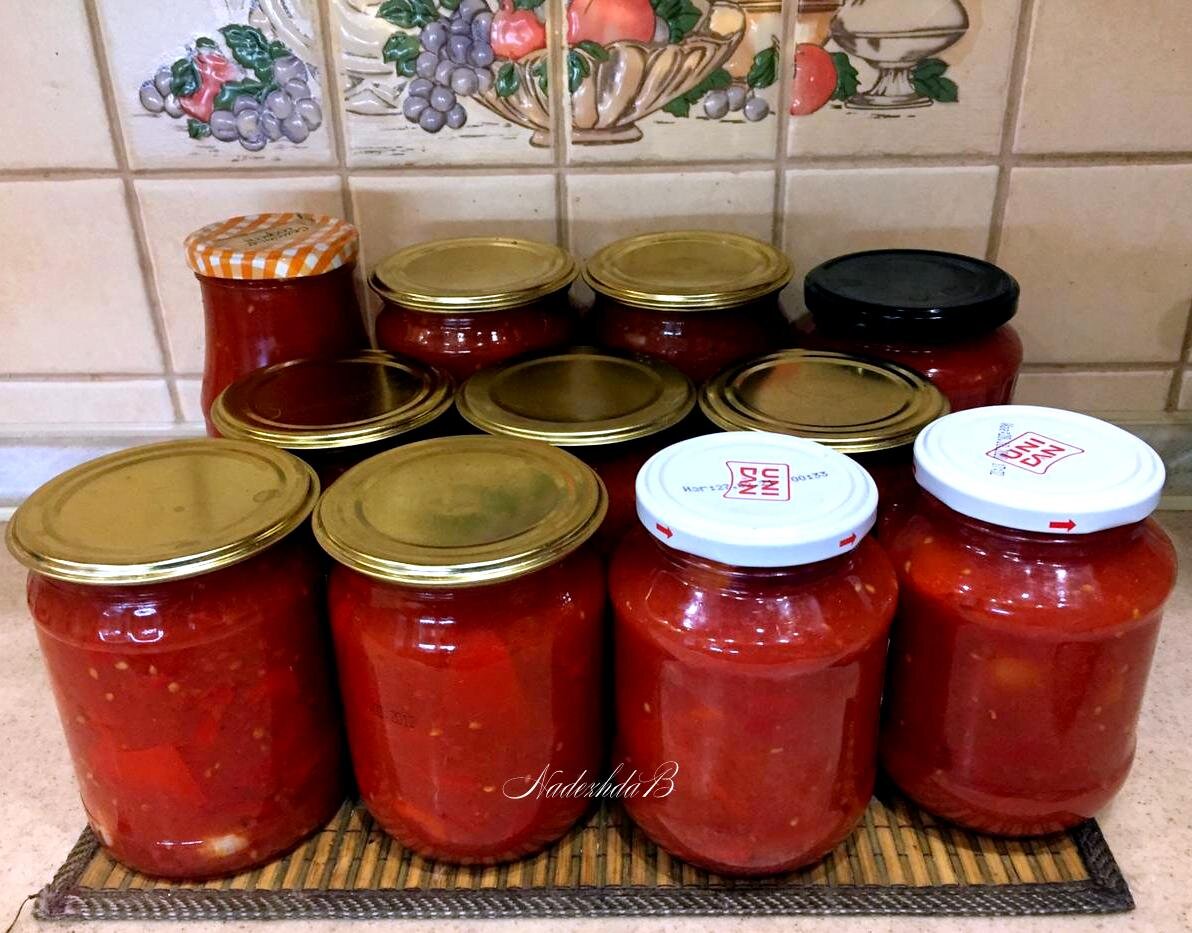 Во времена далекой молодости, в первые годы своего замужества я делала очень много заготовок на зиму. Тогда у свекров была дача и овощей хватало на все наши семьи Дачу давно продали, да и времена изменились - теперь в магазинах всего достаточно и потребность делать заготовки на зиму как-то само собой отпала. Лет 20 я вообще ничего не закрывала. На днях мы поехали в лес за грибами, но не особо удачно, грибов почти не насобирали, зато на обратном пути проехались по полям и набрали арбузов, болгарского перца, помидоров, лука. Не все бесплатно, поля еще не брошены, но по очень выгодной цене, гораздо ниже нашей рыночной, тем более, что собирали для себя, т.е. отборное))) Часть перцев сложила в морозилку, срезав только макушку - один в один, стаканчиками (для фаршировки), часть нашинковала соломкой для готовки других блюд, и еще закрыла лечо и аджику Не стала испытывать рецепты из интернета, достала свои, написанные еще от руки в начале 90-х (они точно проверенные уже) и теперь хочу поделить
